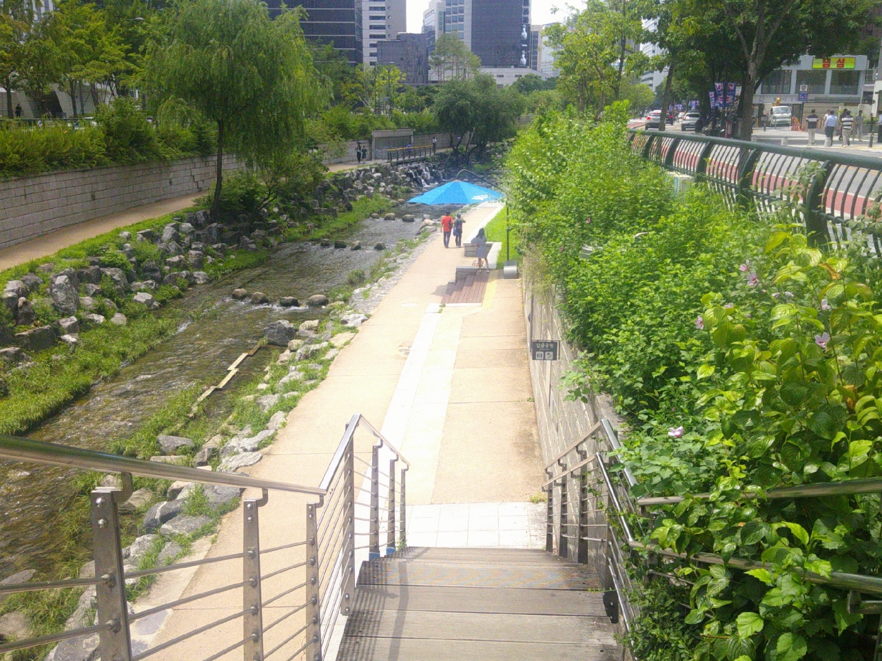 今回は7月にソウルを訪問しましたが、流石にこの時期のソウルは暑くて、清渓川沿いの遊歩道も、日陰が案外少ない箇所も多くて、特に昼間の時間帯は、その他のシーズンと比較すると、相対的に歩いている方は少ないように感じました。勿論、色々な所から出入りができますので、暑い時期は通しで歩くのでなく、ピンポイントで短距離を歩くのが良いかもしれませんね。ホテルが近い方は、涼しい時間帯の朝夕の散歩がお勧めです。