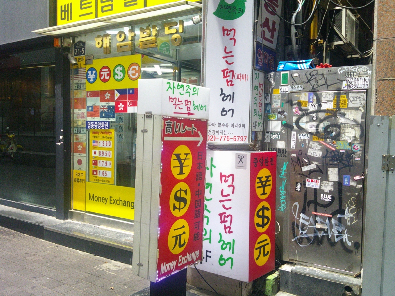 ただ、そういう方にもやはり両替所が多いということで、両替スポットとしてはお勧めできる街区です。レートも空港よりはずっと良いので、ウォンの持ち合わせがない方は、空港でここに至るまでの最低限の金額を両替した上で、こちらのどこかの両替所でメインの両替をされると良いでしょう。