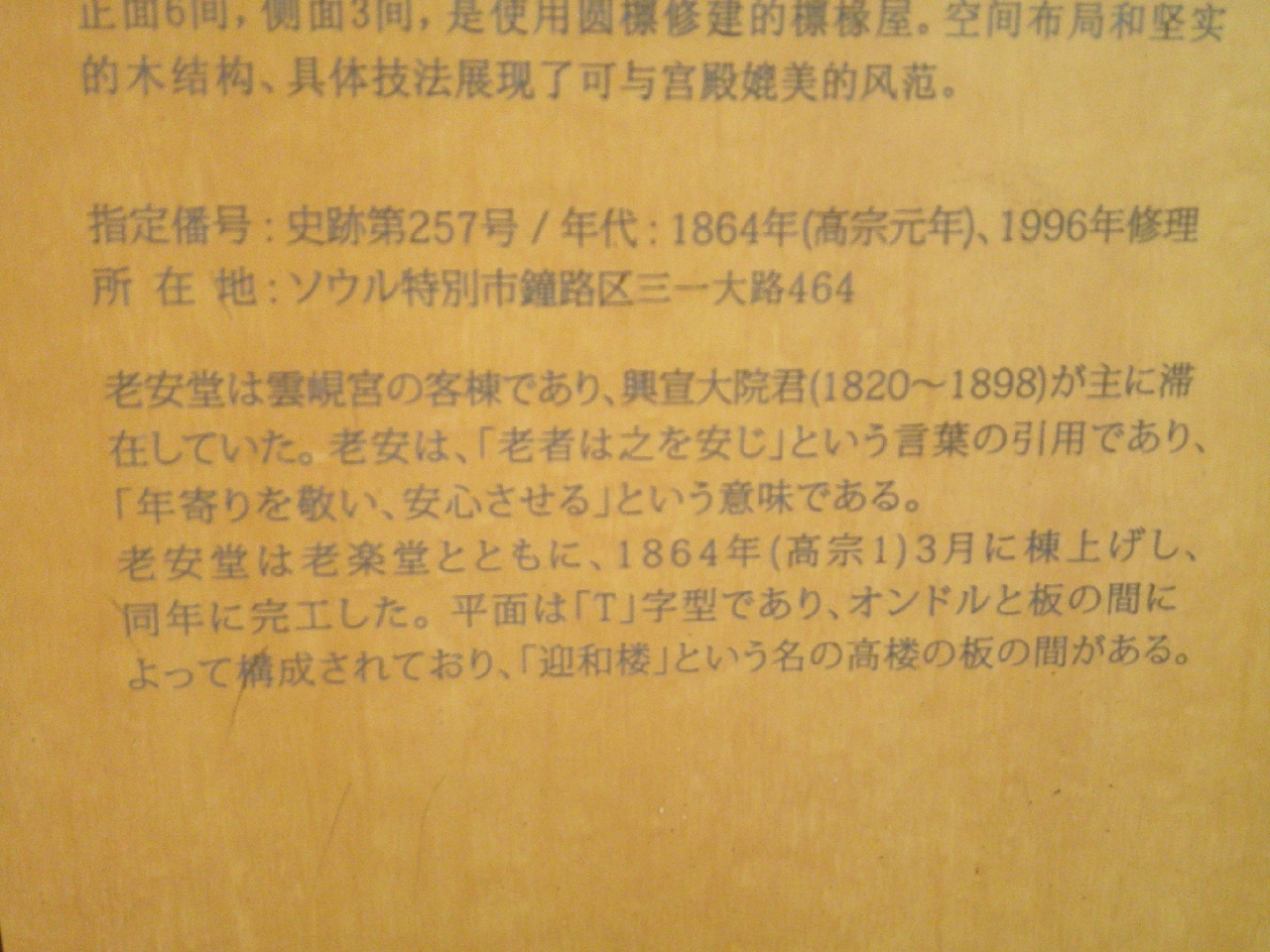 いわゆる五大宮には含まれていない、小規模なイメージの雲峴宮ですが、各見所はコンパクトにまとまっていて、効率的に観光できるという意味では、なかなかお勧めできる王宮だと思います。