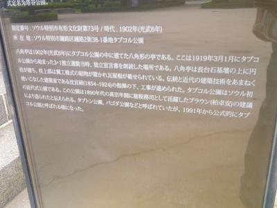 このタプコル公園に関しては、以前からソウル中心部に立地しているにも拘わらず、観光客の姿よりも、地元の方の姿(特にご高齢の方)を多く見かける場所でしたが、3年半の時を経て再訪してみても、その光景には大差なく、私が日本人と見てとると、色々と話しかけてくれたおじさん(人類学の博士だった…)もいました。