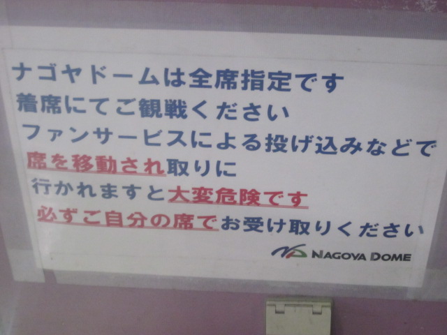 大体にして、札幌Dだと、ビジターチームに対する対応が無茶苦茶冷たく感じる(てか、ホームチームを贔屓し過ぎ)ものですが、それを直前に観た後で、ナゴヤDにおけるビジターチーム(今回はロッテ)への対応を見ていると、凄く温かみを感じますね。