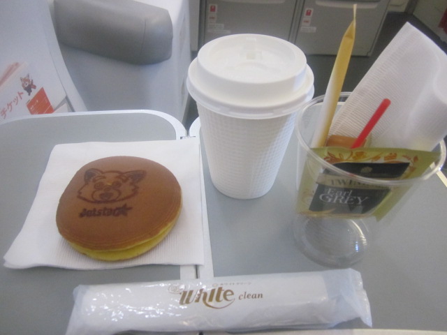 今回はこのクーポンを使って、初めて飲み物として紅茶をオーダー。最近のGK名物のジェッ太君どら焼きとセットで、丁度500円クーポンを使い切れる金額となりますので、クーポン利用でないと、割高感は否めませんが、この紅茶、GKでは私が好きなアールグレイを採用していて、機内にもアールグレイ独自の芳香が漂って、ちょっとしたアロマ的な効果も感じられました。