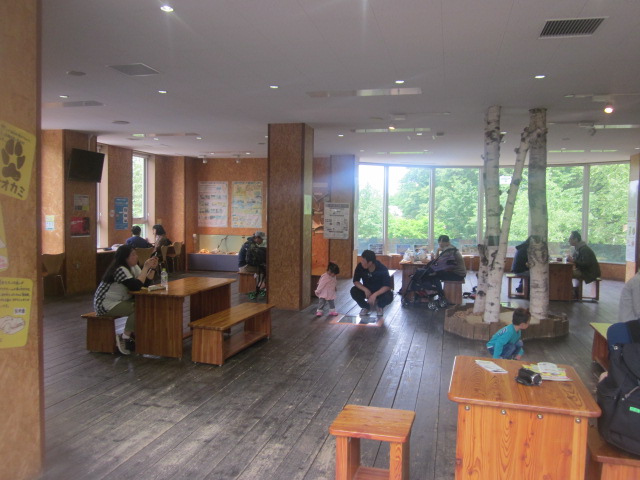 開拓時代前までは、北海道にも生息していたオオカミと、今では道内各地で食害や交通事故などが問題化しているエゾシカ、という、あまり良い意味ではないですが、北海道の動物園らしい二種の動物を飼育している施設です。勿論、今の北海道に野生のオオカミは生息しておりませんので、ここで飼育されているのはヨーロッパオオカミですが、北海道におけるオオカミの歴史などを踏まえて眺めると、凄く寂しげなお顔に見えてしまいました。エゾシカに関しては、正直、動物園で見なくても、道内各地の山林や道路脇で普通に見かける動物ですが、動物園で飼われているエゾシカは、やはりどことなく動きが緩慢な感じがします。2階には椅子やテーブルが設置されたブースもあって、休憩できるようにもなっていますので、歩き疲れた際にも立ち寄るのに良い施設だと思います。