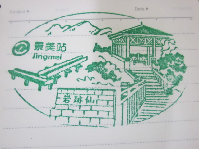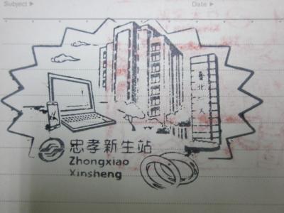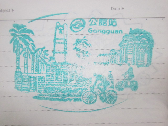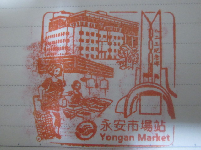 グリーンラインの東の終点、松山駅の一つ手前にあるMRT駅がこちらで、立地的にはあまり観光客が利用することは少ないと思われる駅です。私はスタンプを集めるためにここでも勿論下車しましたが、駅の構造としては、典型的なグリーンラインの駅という風情で、特筆することはないように感じました。ただ、ここに設置されていた駅スタンプのスタンプ台が少し曲者で、他のグリーンライン駅では、淡いグリーン色タイプのスタンプ台が設置されていた一方で、この駅では若干色の違う、ちょっと水分を多く含んだ濃い緑色のタイプで、押す時に強く押しすぎてしまうと、裏に浸透してしまって、両面に押していく場合は、裏面が駄目になってしまう可能性が大きいです。勿論、スタンプ台の状況などは、使用状況によって刻一刻と変化していくものだとは思いますが、今回の台北MRTスタンプラリー過程においては、このような”水分が多いタイプのスタンプ台”というのを、幾つかの駅で見かけました。逆に殆どの駅では、乾燥気味で強く押さないと薄い、という状況なだけに、その逆の状況の駅が目立ちますので、注意が必要です。