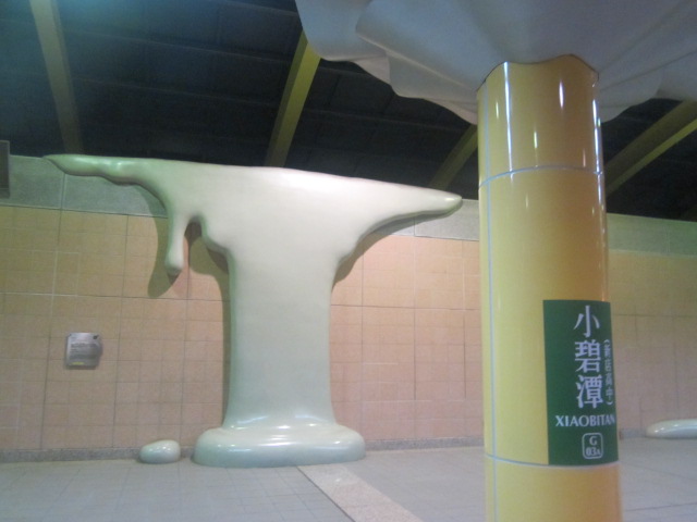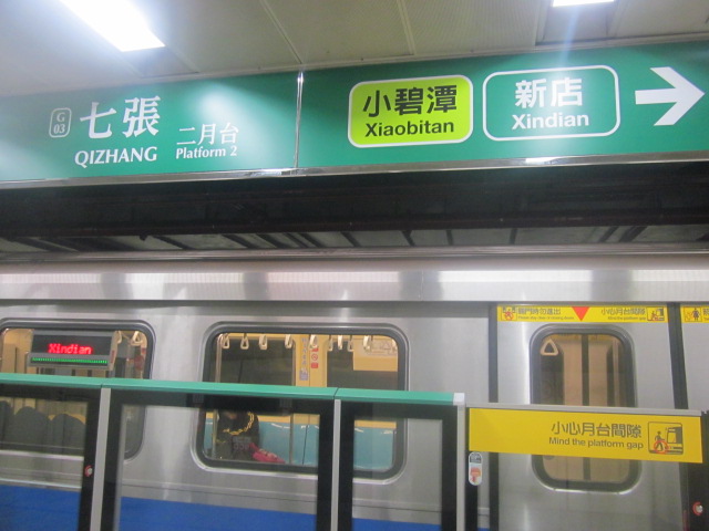 新北市域に位置する駅の一つで、台北の市街地からは少し離れていますが、グリーンラインで一本で行けるので、それ程不便は感じませんでした。ここはグリーンラインの支線扱いとしての小碧潭支線が発着する駅で、運が良ければ、駅に到着後すぐに乗り換えることが出来ます。ただ、小碧潭支線はMRTの他路線と比較しても、最も運行本数が少なく、ラッシュ時でも1時間に6本程度、オフピークですと、1時間に3本位しか運行がありませんので、発車時刻をよく確認された上で、駅構内や近辺の散策、小碧潭支線の旅を楽しまれると無駄がなくて良いかと思います。