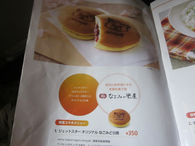ジェットスタージャパン機内で、ジェッ太君柄のどら焼きが購入できます