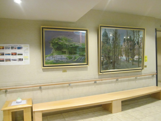 今回はスタンプラリー旅の途上で立ち寄りましたが、ここはまず、ホテルとしての機能だけでなく、地元の方も日帰り入浴で利用される施設でもあって、気軽に入れる温かみのある雰囲気が良かったです。またロビーには、雄武町出身の画家、小田切訓氏の美しい絵画が飾られていて、ちょっとしたギャラリーのような風情でも楽しめる、美しいホテルでした。日帰り入浴料金は大人500円となっています。