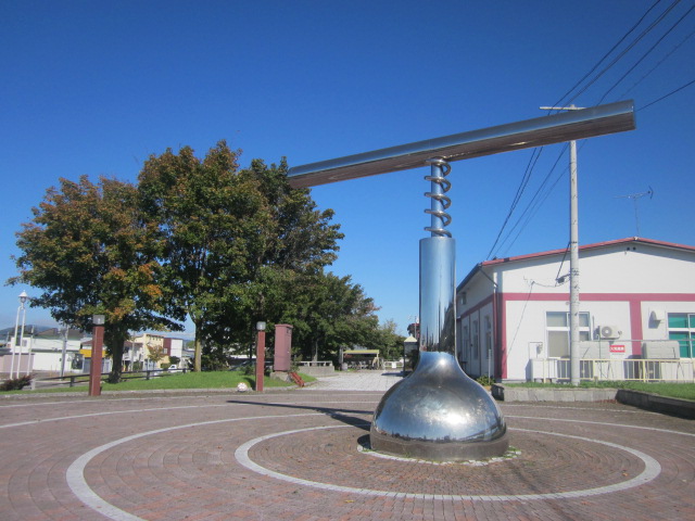 私は昭和の人間なので、思わず”コルク抜き”と言ってしまいますが、こう表現するのが今のスタンダードみたいですね。池田町といえば、やはり十勝ワインの里、ということで、駅のすぐ南東側に聳えるワイン城をバックに、このモニュメント前で記念撮影というのが良いですね。因みに、ワイングラスを象った噴水もありますので、合わせてご覧ください。