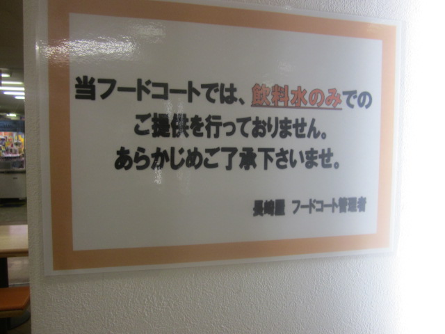 ただ、今まではここは他店と共用のフードコートということで、客席にお水のサーバーが設置されていたのですが、どうやら、お水だけ飲みながら居座る、みたいな人が多かったみたいで、このサーバーが撤去されてしまっていました。
