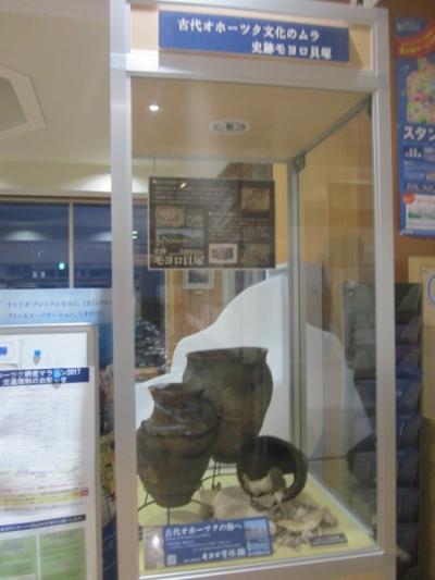 個人的には、網走市内観光の際には必ずといっていいほどの頻度で訪れている道の駅ですが、今回は、スタンプラリーの過程で、閉館前の時刻に慌ただしく訪問しました。某道の駅ランキングでもNo1に輝いた掲示などが誇らしげに飾られていたり、相変わらず、というか、ますます館内の充実ぶりが確認できましたが、今回印象に残ったのは、モヨロ貝塚関連の展示です。オホーツク文化圏における最大の遺跡として、もっと注目されても良い貝塚だと思いますので、是非、ここの展示にもご注目、そしてここからも近距離にあるモヨロ貝塚自体にも足を運んでみて下さい。
