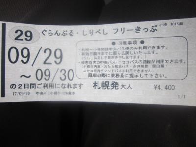 最初、札幌大通の中央バスターミナルでこの切符を購入予定でしたが、窓口のオープンが遅くて、出発予定便に間に合いませんでしたので、小樽で小樽発の同切符を購入しようとしたところ、小樽でも札幌発で買えるとのことで、結局、札幌→小樽間の片道運賃を払った後に、小樽で札幌発のぐらんぶるしりべしフリーきっぷを購入する羽目になりました。