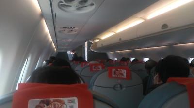 就航記念運賃が4,500円(プラス燃油サーチャージ2,100円)という格安設定があったことも関係してか、機内はほぼ満席の大盛況でした。