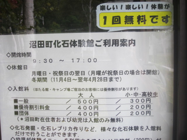 人里離れた沼田町の山奥に位置している幌新温泉界隈で、小型蒸気機関車のクラウス15号と共に、観光の目玉となっている施設がこちらです。普通、化石関連の施設といえば、展示品を仰々しく眺めておしまい、という所が多いかと思いますが、ここは体験型のプログラム(化石発掘・化石レプリカの作成など)が用意されていて、それらをリーズナブルな入場料だけで楽しめるということで、特に夏休み時期などには人気を博しています。体験型施設ですので、入ってからはそれなりに時間を所要することになりますので、お時間に余裕がある方向けの施設です。