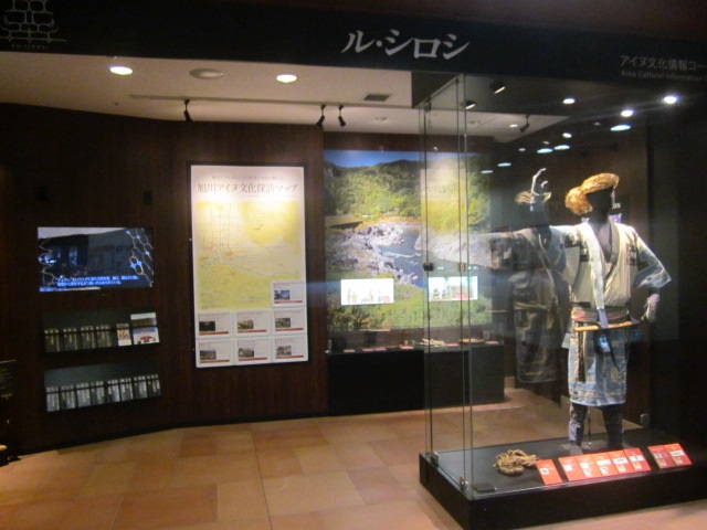 旭川駅構内にあるアイヌ文化紹介ブースのこちらですが、今回は久しぶりに具に訪問してみました。意外と気づいていなかったんですが、数年前と比較して、英語のみならず、中国語や韓国語のパンフなども用意されていて、海外の方にもアイヌ文化が紹介されるようになっていた光景には感動しました。展示品に関しては、以前とあまり変わりないようですが、日本語パンフに関しても、旭川エリアのアイヌ関連施設の地図が詳細に示されていて、旭川でアイヌの香りを求めて散策する旅、というのも面白そうだなと感じさせてくれる内容となっていますので、是非一度手に取ってこのパンフを見てみて下さい。