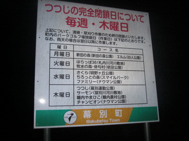 何故か、幕別のパークゴルフコースとしてこちらの方だけが登録されているようですが、パークゴルフ発祥の地の幕別において、より有名なのは、最初の公認パークゴルフコースとなった、つつじコースだと思います。サーモンコースとは隣接していて、どちらもクマゲラハウスという施設にてクラブなどをレンタルできますし、コースの使用料も無料となっています。つつじコースの入口付近には、パークゴルフ発祥の地の記念碑がひっそりと建てられていますが、地元の人も知らない方が多いほど、目立たない風情なので、知らないと見つけるのは大変かもしれません。しかし、パークゴルフの歴史を考える上で、重要なスポットだと思いますので、是非、探してでもこちらの記念碑に立ち寄ってみて下さい。JR幕別駅からは徒歩15分程度で行くことができる距離です。