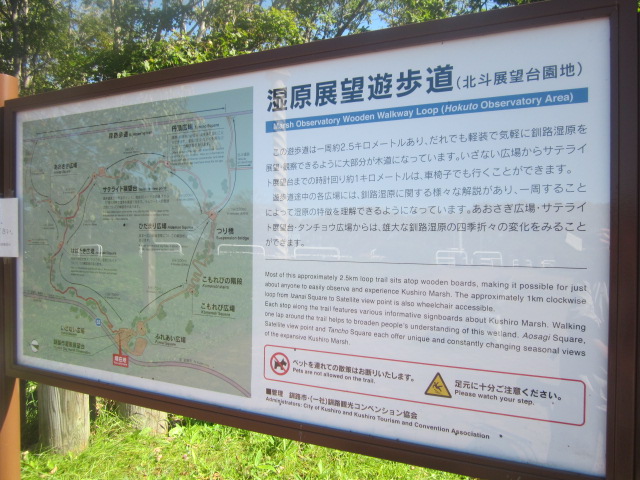 釧路市湿原展望台から続く遊歩道で、ツアー団体観光客で賑わう展望台の落ち着かない雰囲気とは打って変わって、湿原の魅力を存分に堪能できる、という意味でお勧めの遊歩道です。私はサイクリングの途中での立ち寄りで、展望台に無駄な時間を費やしてしまった関係で時間が押してしまって、遊歩道を歩く時間があまり確保できませんでしたが、正直、展望台よりもずっと魅力的な遊歩道です。しかもこちらを歩くだけなら料金もかかりませんので、470円もの無駄金を叩いて、展望台からの一瞬のパノラマを楽しむよりも、ここを歩いて、湿原の魅力を体感される方がずっとお勧めできると思います。
