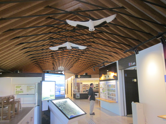 鶴居村にある釧路湿原のビジターセンター的な施設の一つです。ここはまだまだ知名度的には低いかもしれませんが、清潔感溢れる館内で、木の香が漂う新しい雰囲気に包まれていて、居心地が良かったです。駐車場からは少し歩きますので、最初、建物はどこ?って、謎めいた気持ちになりましたが、木道沿いに景観を損なわないように配慮されて設置されたビジターセンターのようで、付近の散策と合わせて楽しまれると良いかと思います。