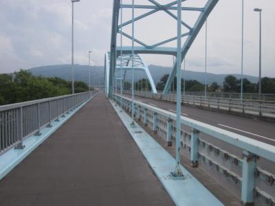 3年ほど前にもクチコミさせて頂いた通り、この橋は両側に立派な歩道が車道とは別個に用意されていて、渡橋の際には怖い思いをすることが多いサイクリストにとっても、ストレスなく渡れる橋としてお勧めなのは以前と変わりませんが、今回はここで突風のような横風に煽られて、いい加減に持っていた街のパンフレットを飛ばされてしまいました。