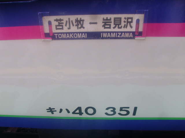 そんな中、最近は、災害による日高本線の鵡川以南運休が続く中、車両を遊ばせておくのは勿体ないから、なのか、やたらと室蘭本線(と千歳線でも)上で、外部塗装が日高カラー、車内もパープル色のボックスシートが並ぶキハ40系を見かけることが多いです。