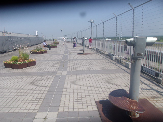 新千歳空港の展望デッキに関しては、屋外エリアは冬季閉鎖になりますので、春から秋にかけての利用となります。展望デッキのレベルとしては、柵の前にちょっと出っ張りが続いていて、角度によっては肝心の飛行機が見辛いこともあって、あまり高評価は与えられないかな、というレベルの展望デッキです。しかも、通路途中に謎の階段のアップダウンがあるのも少々面倒に感じます。