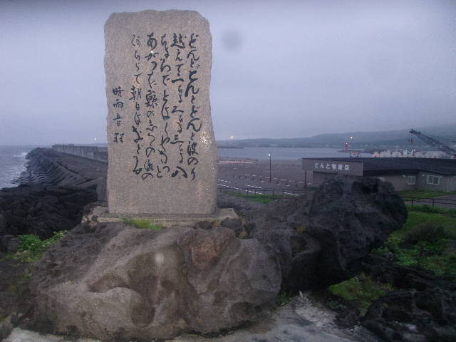 尚、観光地としての側面からすると、ビジターセンターみたいな小さな小屋の中(ここは寝られそうな雰囲気でしたが、大々的に異常気象時以外は宿泊禁止の掲示が見られますので、ご注意下さい)では、利尻島のビデオ放映が楽しめたり、本当の岬の傍には沓形出身の作詞家、時雨音羽の詩碑や音楽碑(但しこちらは故障中のようで、音楽は聴けませんでした)も設置されていたり、周回コース上では利尻の植生や島の成り立ちなどを学習できるパネルなどが設置されていたりしますので、なかなか見所は満載の公園だと思います。- 旅行時期