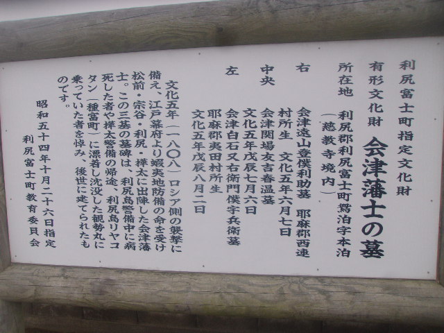 因みに、同じ本泊地区では、すぐ近くの慈教寺境内脇に、会津藩士の墓もありますので、併せて見学されていくと良いです。- 旅行時期