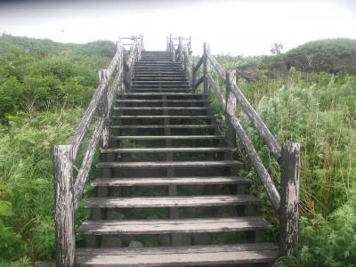 利尻島の西部、沓形地区の中でも最西端に突き出たところにあるのがこの岬で、付近は公園として整備されていて、キャンプ場もあって、1泊300円で利用することが出来るので、鴛泊のキャンプ場よりもリーズナブルです。ただここは海に突き出た立地ということもあって、風の通り道になることも多く、私が訪れた日も生憎の霧模様の天候で、雨は降っていませんでしたが、風の強さが半端なく、まさに修行僧のようなテント泊(ビバークといった方が良い位の風情)でした。苦行を求める方には逆にお勧めですが、一般のピクニック感覚のキャンパーの方には、ちょっとお勧めし辛いキャンプ場かなと思います。