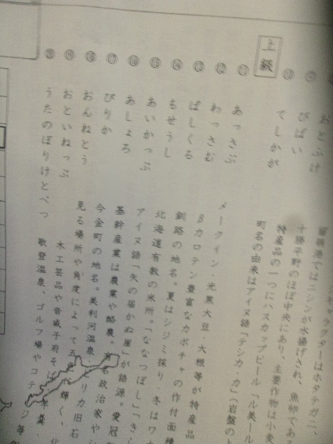 今回は、旭川から羽田まで、こちらのエアラインを利用しました。北海道の翼として、道民には何となく愛着がある航空会社ですが、今回はドリンクサービスなどが一段落した後に、CAの方が大人のワークシートなるものを配り始めたので、これを楽しんでみました。北海道の難読地名が初級から上級までランク別に並んでいたり、北海道関連のクロスワードパズルなど、結構楽しい内容で、良い暇つぶしになりました。是非、皆様もチャレンジしてみて下さい。