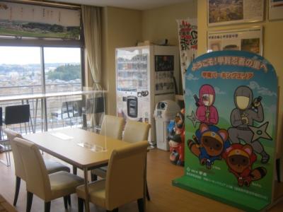 まず、売店や軽食コーナーのある1階の喧騒を離れて、実はここには一般人が利用可能な2階があって、ここが休憩所兼展望台となっていて、景色を楽しみながら、ドライブ疲れを癒すのに利用価値が高いです。