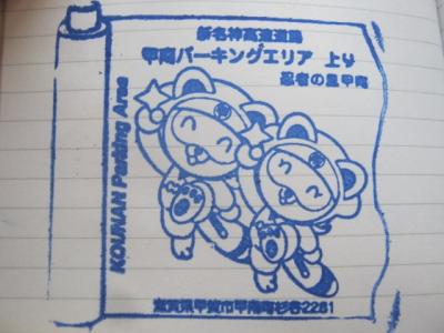 前に下り線の場合は、売店のカウンターに記念スタンプが保管されていることを綴らせて頂いたことがありますが、上り線に関しては、この休憩室内に設置されていて、係員へのお声掛けは不要で押印することが出来ます。また、この2階には、カエルさんを携えたタヌキさんもいらっしゃるので、カエルマニア・タヌキマニアの方はお見逃しなく!- 旅行時期