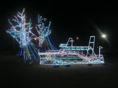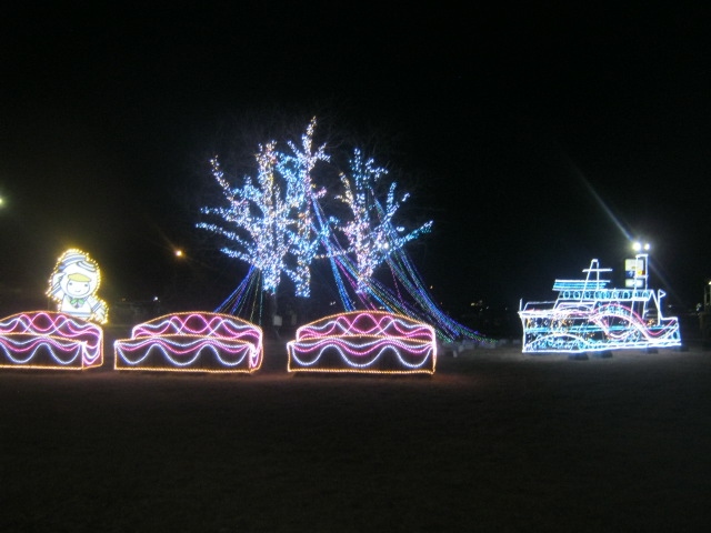 2022年冬はターミナル前に美しいイルミネーションが設置されていてびっくり。特に、フェリー型のイルミネーションは港ならではという風情で、とても印象に残りました。