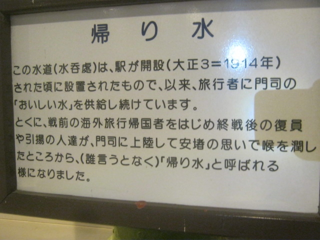JR門司港駅の公衆トイレ向かいにある水場で、大正3年に設置されておりますので、100年以上の歴史を有する由緒ある設備で、勿論今も尚現役でお水を頂くことが出来ます。