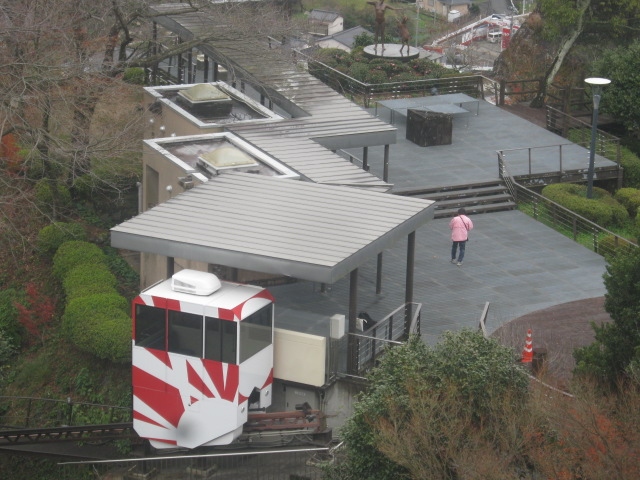 ここが面白いのは、麓にあるつなぎ美術館から、美術館併設のモノレールでアクセスできることで、私は12月の訪問でしたが、付近の紅葉が素晴らしく、しかも寒い日だったので、遠くの山々は白く雪化粧していて、北海道民的には、丁度、初雪時の大雪山系の紅葉を思い出してしまいました。