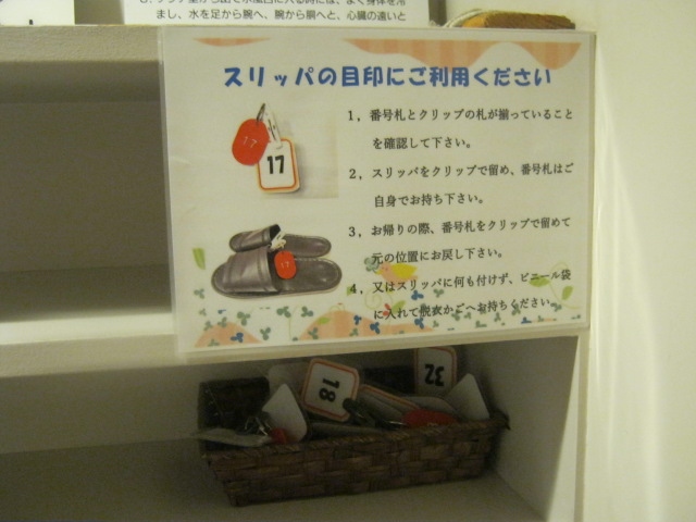 大浴場は相変わらずの風情で、何か帰って来たなとホッとできる昭和な風情が健在でしたが、大浴場入口で脱ぐスリッパが混同することへの対策として、番号札が用意されるようになっていました。