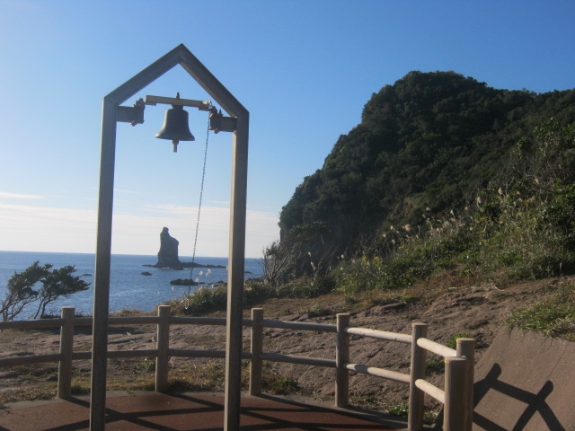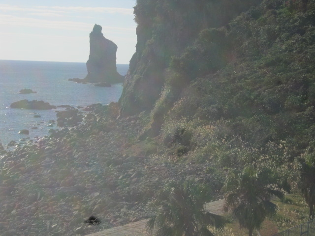 まさしく、お立ち姿の神様のようで、神々しくて思わず合掌したくなる素晴らしい岩です。枕崎のランドマークとして、よくパンフとかにも掲載されていますので、枕崎観光の際は是非近くまで足を運んでみて下さい。因みに海中に立っていますので、一般人が普段岩にアクセスするのは不可能です。