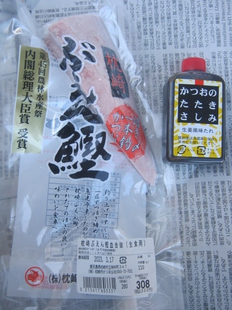 最近の枕崎では、”ぶえん鰹”と命名された、新鮮なうちに血抜きして急速冷凍させた鰹が有名になっていますが、その鰹を購入するならこちらがお勧めで、私のような素人には違いが解らないのですが、各部位のそれぞれが冷凍真空パック状態で販売されています。