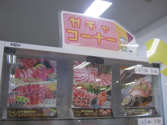 あとここには面白いガチャが設置されていて、当たると高級牛や高級鰹が貰えます。1回500円で、ハズレはありませんので、試してみる価値は高いでしょう。