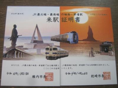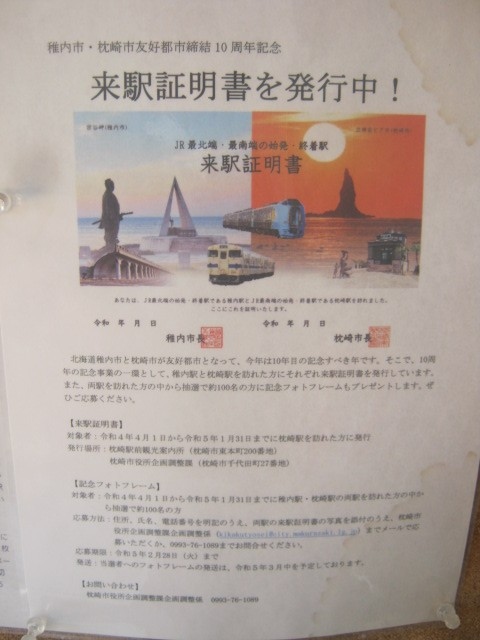 今回の私は、最北の稚内市との姉妹都市提携10周年を記念して、両市で用意されていたJR駅南北両端への到達証明書を貰うことが第一目的でしたが、この絵が繋がった時は流石に感動しました~。