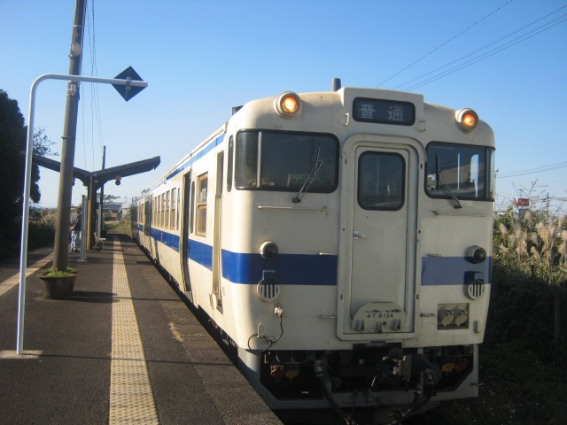 往路に関しては平日だったということもあり、どの区間でも利用者の殆どは通学利用の高校生という感じでしたが、山川で枕崎行きに乗り換えた後の車内の雰囲気が、男子学生ばかりが目立つ、という特徴が見られました。調べてみたところ、山川→枕崎間では、西頴娃駅が最寄り駅の頴娃高校、枕崎が最寄り駅の枕崎高校の他に、薩摩板敷駅が最寄り駅の鹿児島水産高校があり、その中では鹿児島水産高校が生徒数が一番多いようで、しかもこの高校の男女比が5:1位で、圧倒的に男子学生の方が多いので、このような車内の風景となっていたようです。