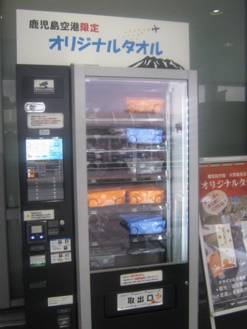 まず、以前はなかった空港足湯オリジナルタオルの自販機。デザインも三種類から選べますし、この自販機、電子マネーが対応しているのも凄いなと思いました。