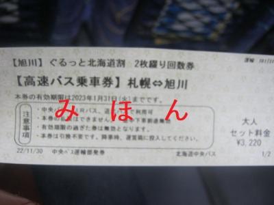 逆に復路はその五日後位に利用したのですが、今度は天候も安定していて、驚くべきことに、丁度、冬季ダイヤの定刻で旭川駅前に到着することが出来ました。