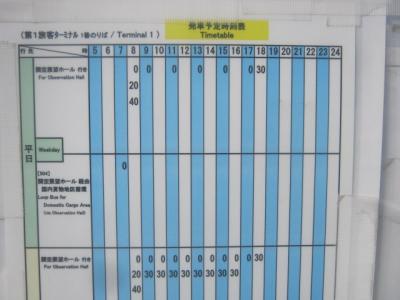因みに、旅客ターミナルからスカイビューまでは、原則として徒歩アクセスは禁止されていますが、このバススケジュールで、向こうから折り返しに乗れない方が多く発生しているようで、平日のスカイビューから旅客ターミナルへの徒歩移動に関しては、現状では黙認されているようでした。但し、30分位かかるとのお話でした。
