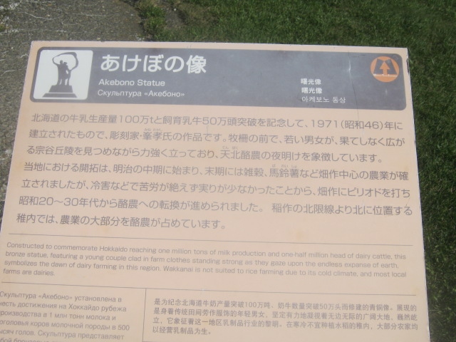 農業に携わる身にとっては、この像が宗谷岬傍に建っていることは非常に意義深いと思っています。同じ農業でも、稚内まで来てしまうと畑作はやはり難しいこともあり、酪農がメインとなりますが、元々は畑作も試みられていた歴史があります。