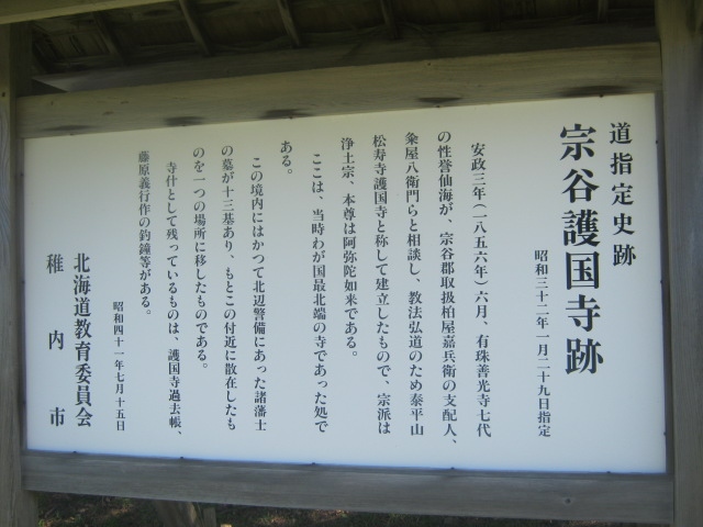 残念ながら創建時の建物は1912年に焼失してしまい、今見られるのは場所を移して1950年に再建された宗谷護国寺ですが、元の場所の護国寺跡が北海道文化財に指定されていて、宗谷公園内でそれを示す標柱と解説板が建っていますので、是非こちらもご確認してみて下さい。- 旅行時期