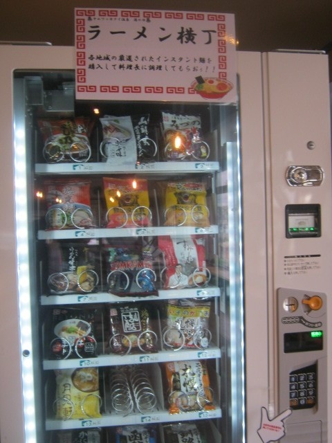 食事処もありますが、お風呂に近い側だとラーメン横丁という自販機が設置されていて、袋入り麺を購入して、それを調理してもらうというユニークな方式にもなっています。