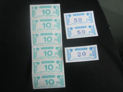 最近の購入では、10円券はまだ従来タイプでしたが、20円券・50円券は、汎用タイプとなっていました。(いずれも11枚綴りで10枚分の金額。)