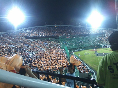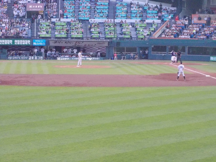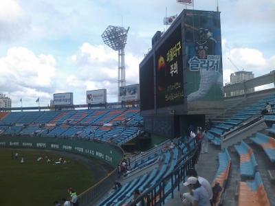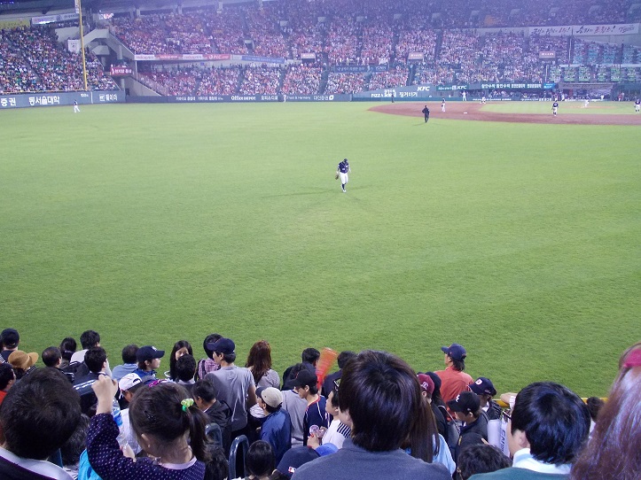 大田駅からは30分位歩く距離ですが、この球場は昔ながらの野球場の風情で、プロ野球の球団の本拠地としてはちょっと小さいかなと感じますが、その分、昔の川崎球場や藤井寺球場などを彷彿とさせてくれるアットホームな雰囲気がたまりません。ただ、ここを本拠地としているハンファイーグルスが、ちょっと弱いのが残念です…。