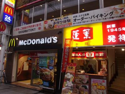 関空に到着後、南海に難波に出て道頓堀観光に向かう際に休憩で利用したマクドがこちらです。すぐ隣が有名な蓬莱の本店で、立地的にも非常に判り易いと思います。この付近は大阪らしく金券ショップが色々とあって、今回も事前に70円のコーヒークーポンを購入してから利用しました。こうしたお得なマクド利用をしやすいのも大阪らしい利点かなと思いました。