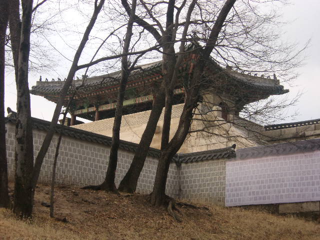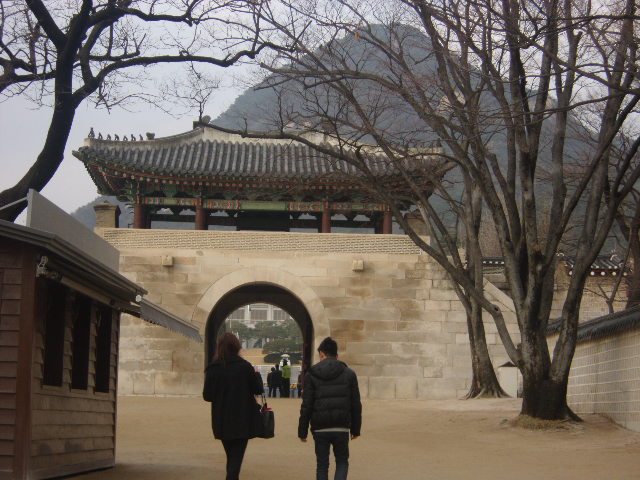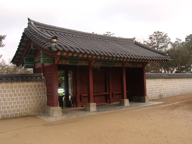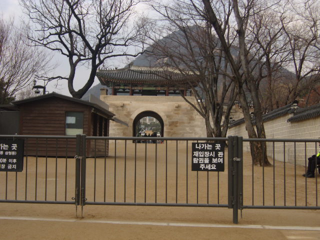 殆どの観光客は景福宮へのアクセスの際、南側の興礼門を利用されるかと思いますが、実は北側にもこの門があって、こちらから入場することも可能です。ただ、立地的にここは大統領府である青瓦台が近いために、セキュリティ面でちょっと厳しさがあります。この門をくぐってすぐの所にある小さな門の入口に警備員が立っていて、ここでボディチェックや荷物検査を受けることになります。門自体は撮影可能ですが、青瓦台方面が見えるような角度で撮影しようとするとトラブルの元となりますので、一応の配慮は必要かと思います。