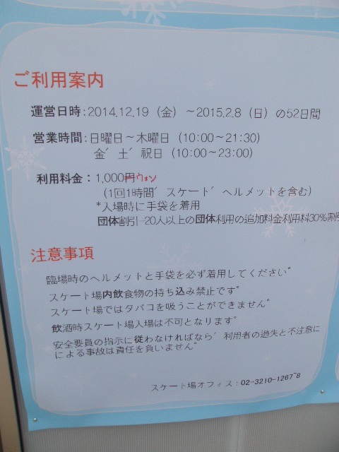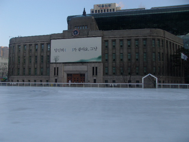 市庁前の広場に冬季に開設されるスケートリンクは、実は数年前にも見たことがあったのですが、今回久し振りに訪れてみて、その整備状況が一層良くなっていることに驚かされました。かつてはもっと野暮ったい感じのチケット売り場があって、行列も出来ていてスタッフの方も大変そうだなあと同情しながら見つめたのですが、今回見てみると、立派なチケット売り場のような建物が造られていて、本当に冬季限定なのかと見紛う程でした。スケートリンク自体の製氷状態も凄く上質に感じられ、この辺りは、やはりスケート競技が強い韓国なので、力の入れようが違うのかなと思わず納得してしまいました。
